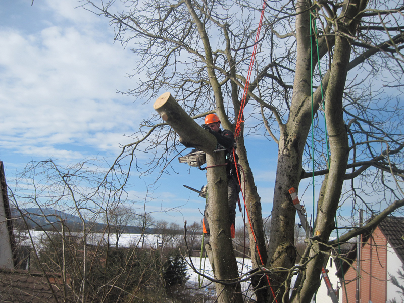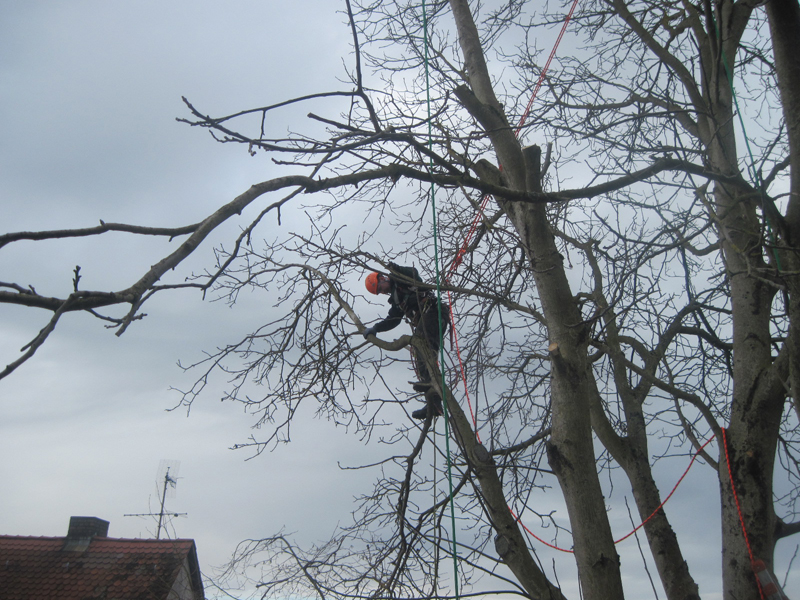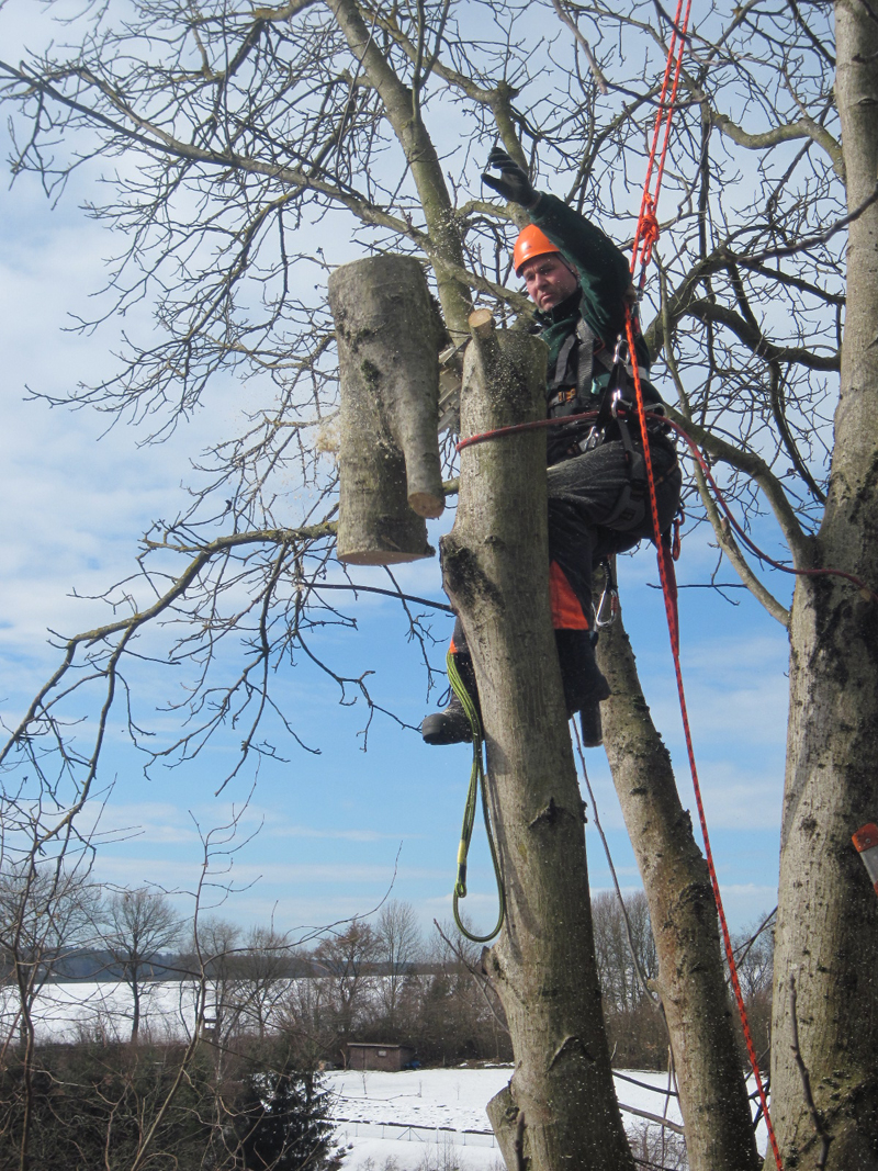 Wir führen das Fällen und Schneiden von Bäumen mit Hubarbeitsbühnen aus. Sollte es an manch schwierigen Stellen nicht möglich sein Hubarbeitbühnen einzusetzen, können unsere speziell ausgebildeten Mitarbeiter auch in schwierigsten Lagen die Arbeiten mit der Seilklettertechnik sicher ausführen.