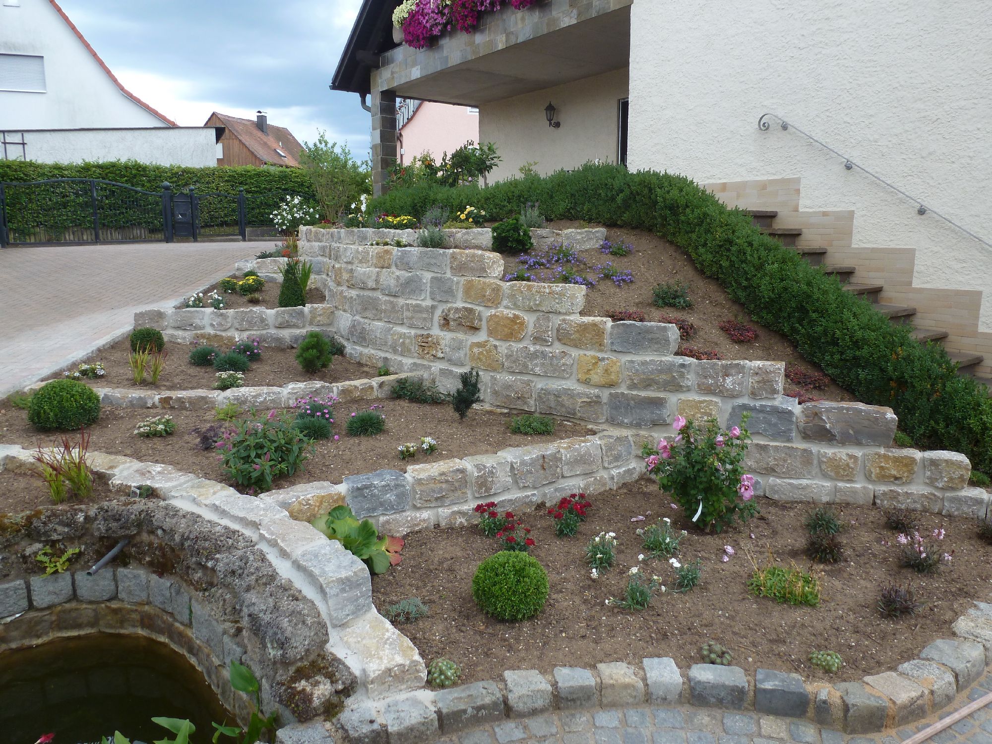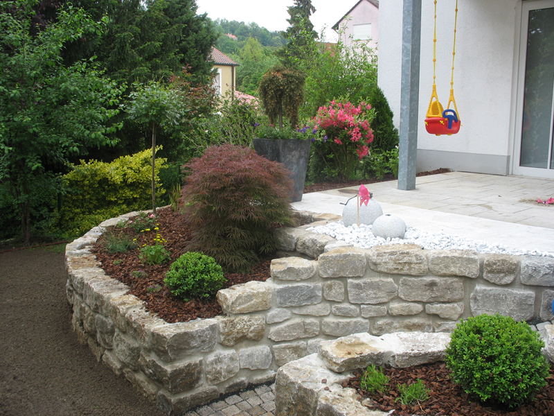 Palisaden oder Natursteinmauern werden fachlich und zuverlässig ausgeführt. Mauern werden trocken gesetzt, oder nach Wunsch auch mit Mörtel verfugt. Mit einer schönen Bepflanzung mit Stauden und Gehölze, kann man die Mauer besonders schön gestalten.